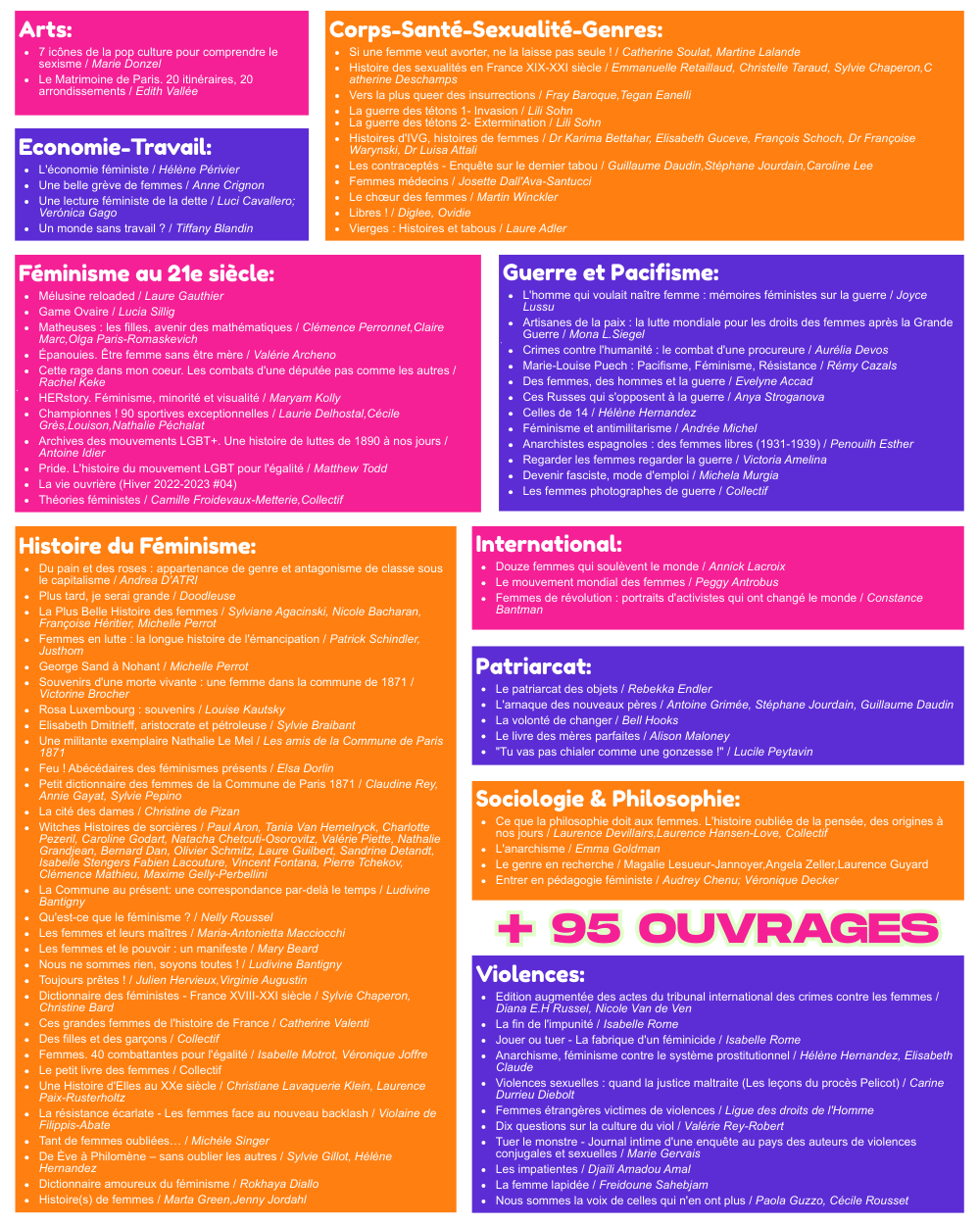 Répartition de ces 95 nouveaux ouvrages féministes: